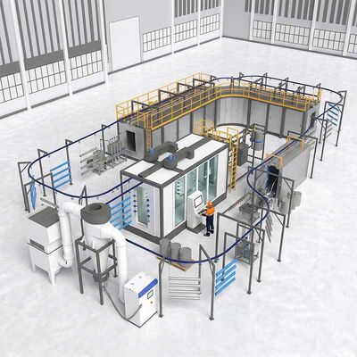 3정확한 응용 및 제어: 통합 된 분말 코팅 부시는 여러 자동 총과 수동 터치업 스테이션으로 장착되어 있습니다.모두 중앙 HMI에 의해 관리됩니다. 일관된 코팅 두께와 완성 품질을 위해.