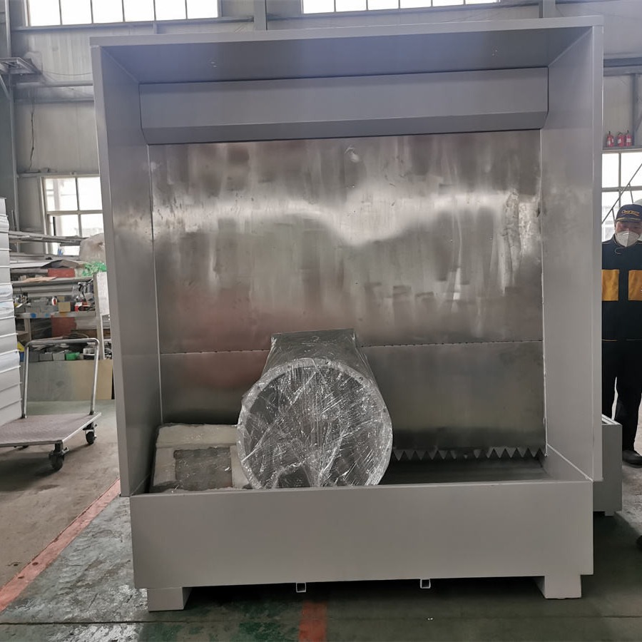 2000 × 1100 × 2400mm의 물 커튼 캐비닛은 스프레이 페인트링 중에 페인트 파우더를 캡처하고 냄새를 필터하도록 설계되었습니다.