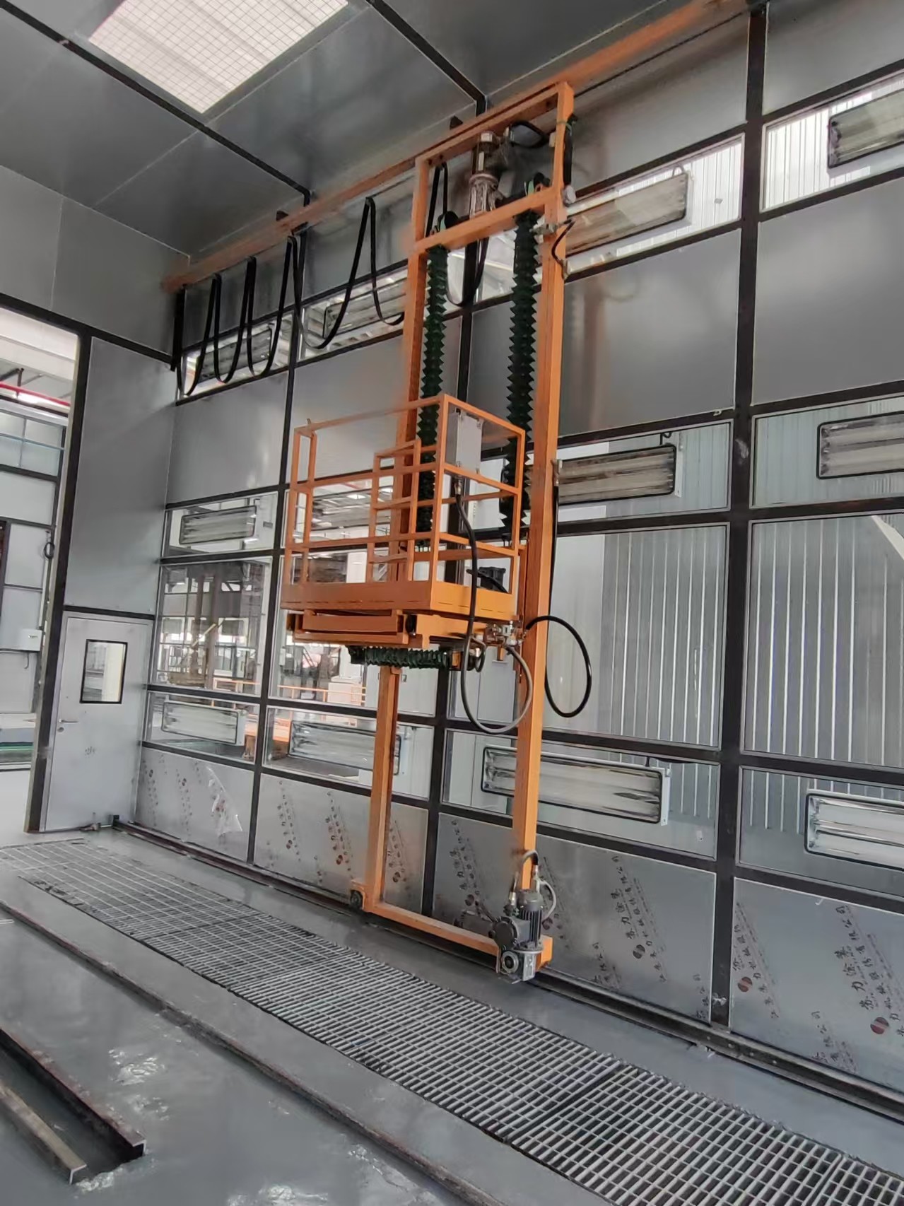 요약: 모든 각도에 안전하게 도달하십시오. 버스 지붕이나 항공기 상부 동체를 페인팅하는 데 위험한 사다리나 비계가 필요하지 않아야 합니다. CoatTech 3축 맨 리프트는 완전히 공압식으로 벽에 장착된 케이지로, 페인터가 세 가지 차원(좌/우(X), 상/하(Y), 안/밖(Z))으로 움직입니다. 안정적이고 인체공학적인 플랫폼을 제공하여 작업자가 대형 작업물 주위를 쉽게 이동할 수 있도록 하여 일관된 스프레이 건 거리와 뛰어난 마감 품질을 보장합니다.